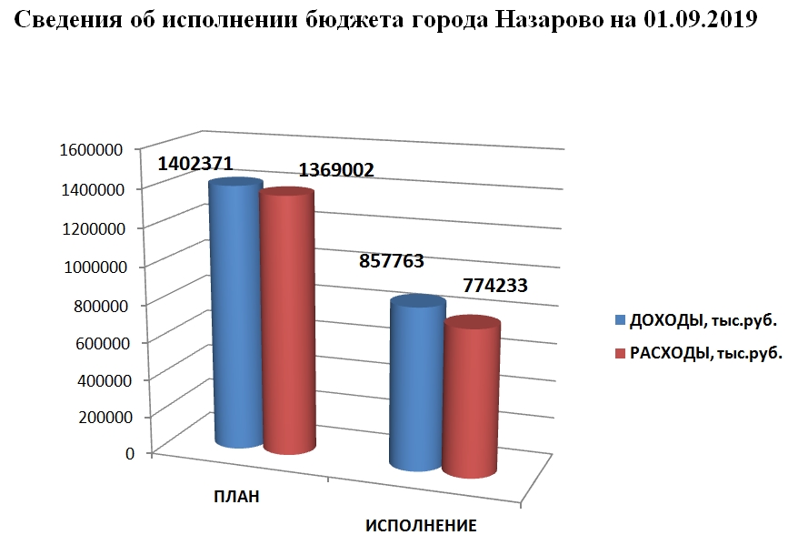 бюджета города Назарово на 01 сентября 2019 года |