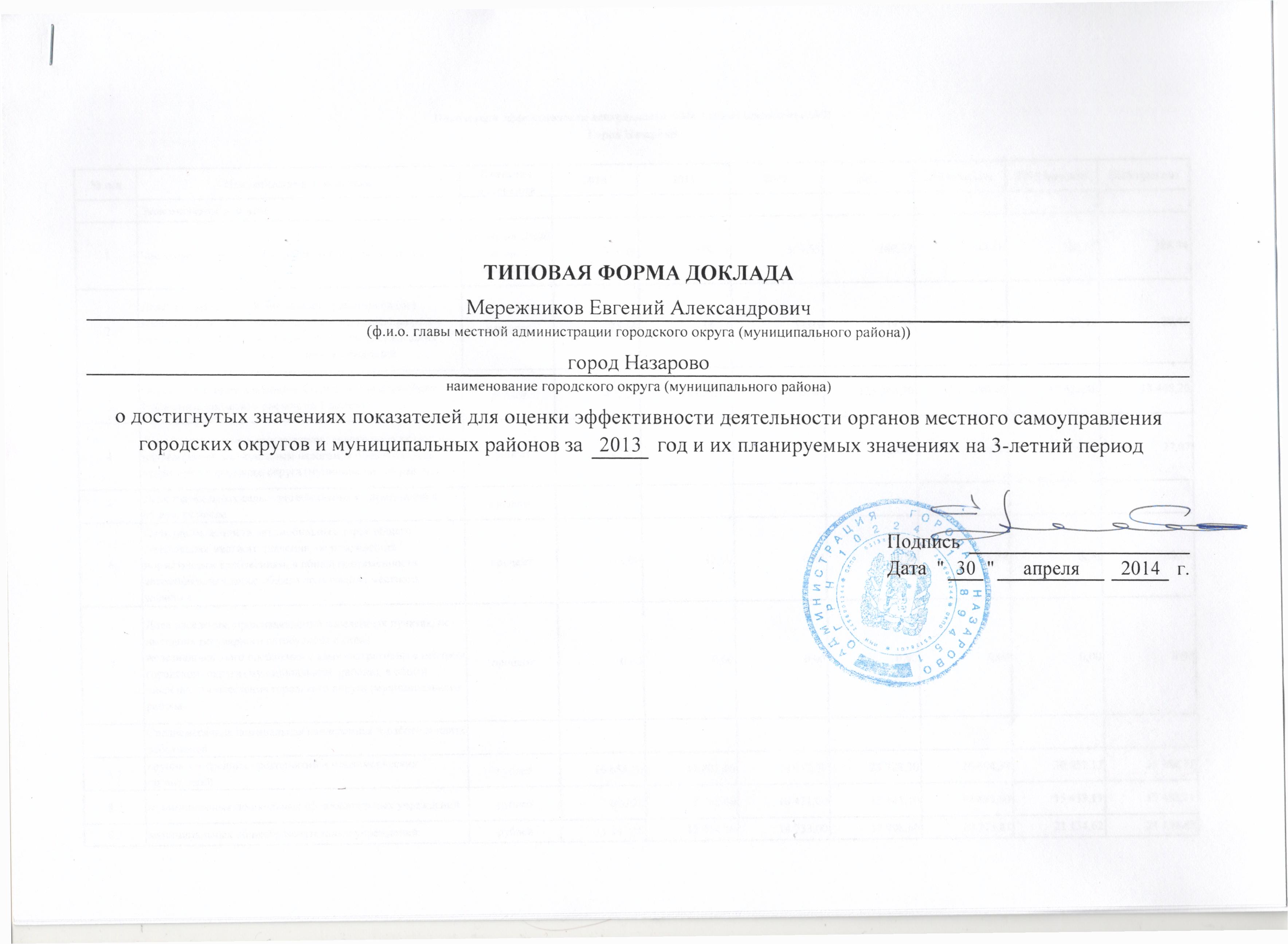 Показатели эффективности деятельности ОМСУ г.Назарово за 2013г.